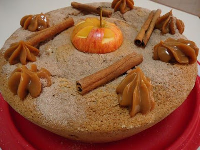 3 maçãs sem casca, cortadas em cubinhos e misture na massa delicadamente.